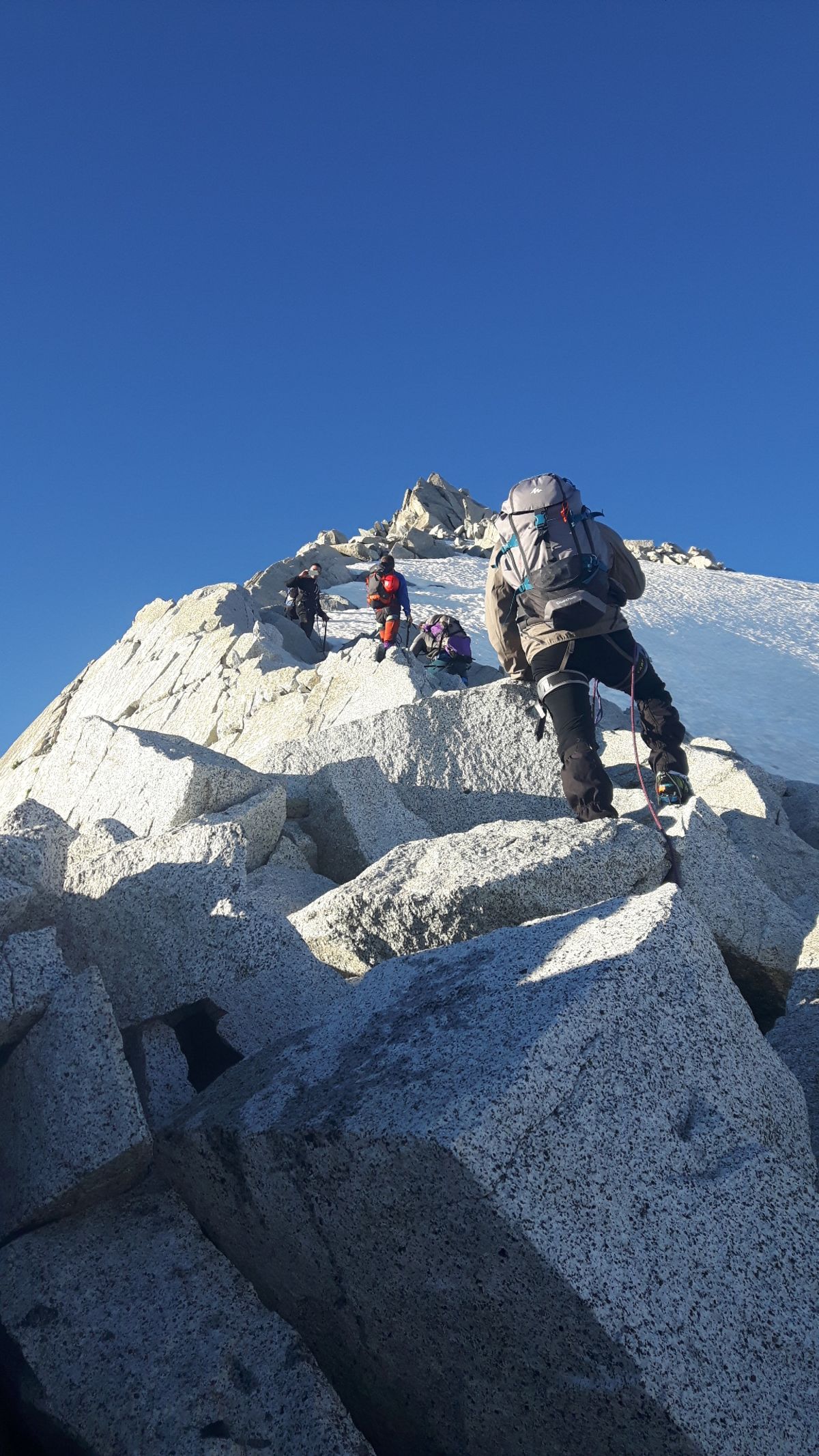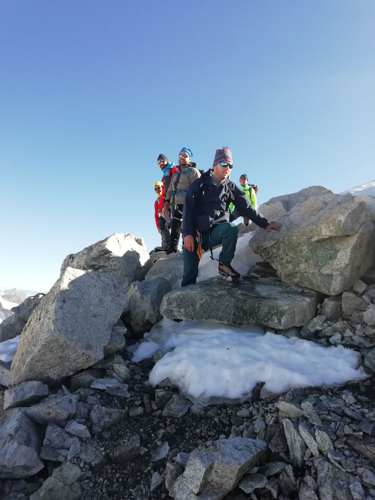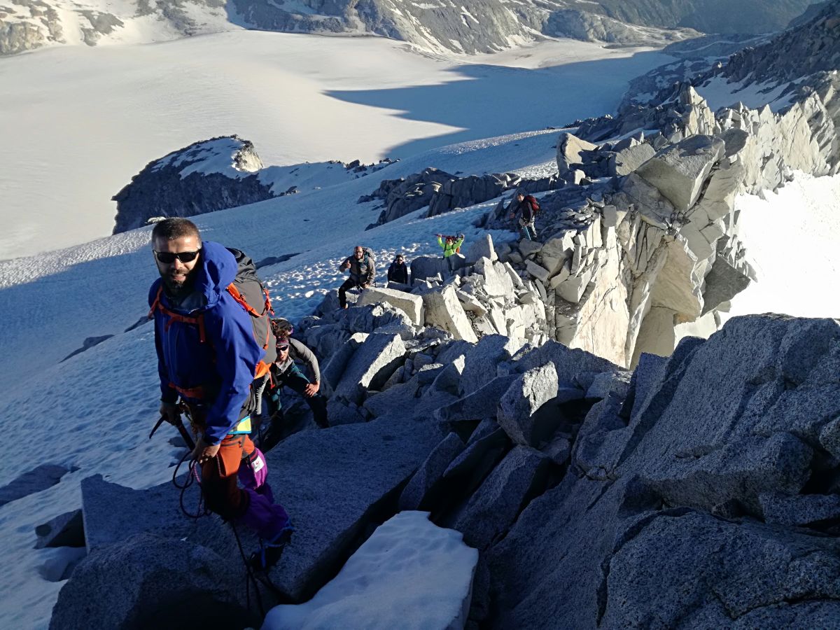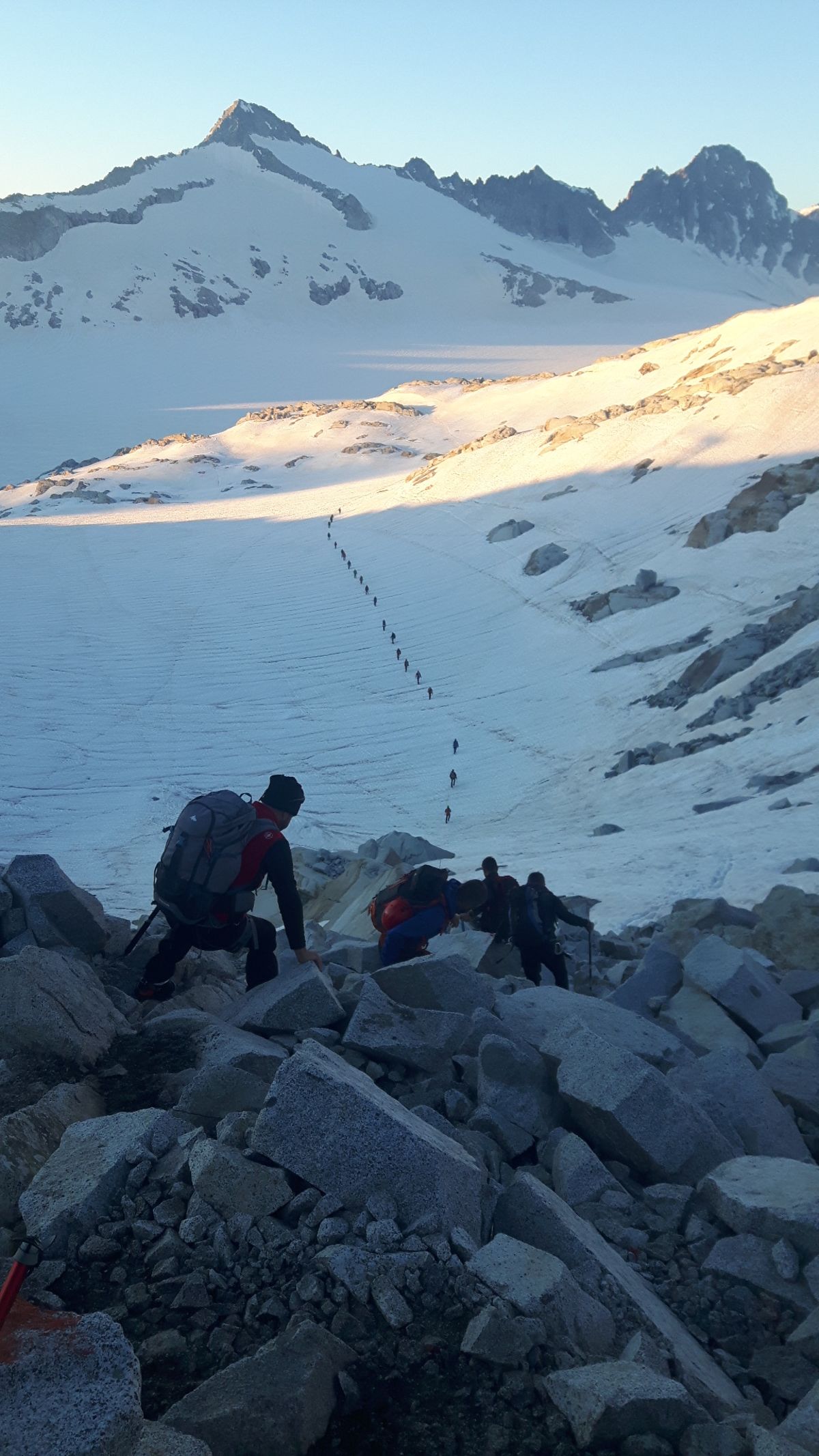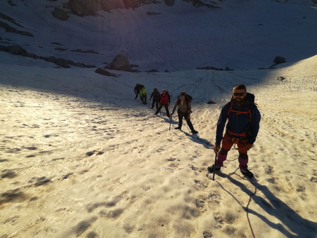 Sveglia ore 4,50, colazione, imbragati e ramponati, alle 5,50 si parte per la cima.