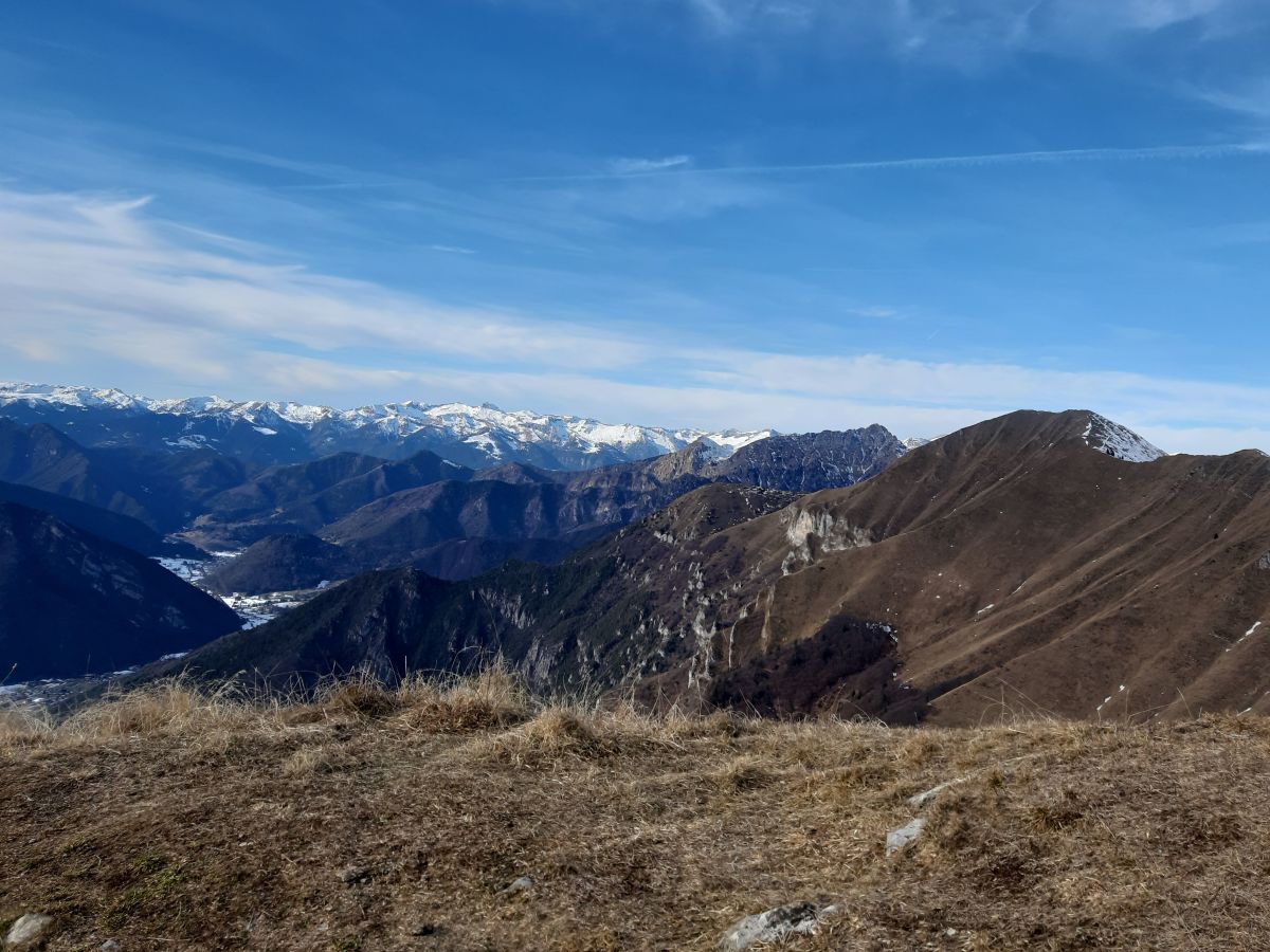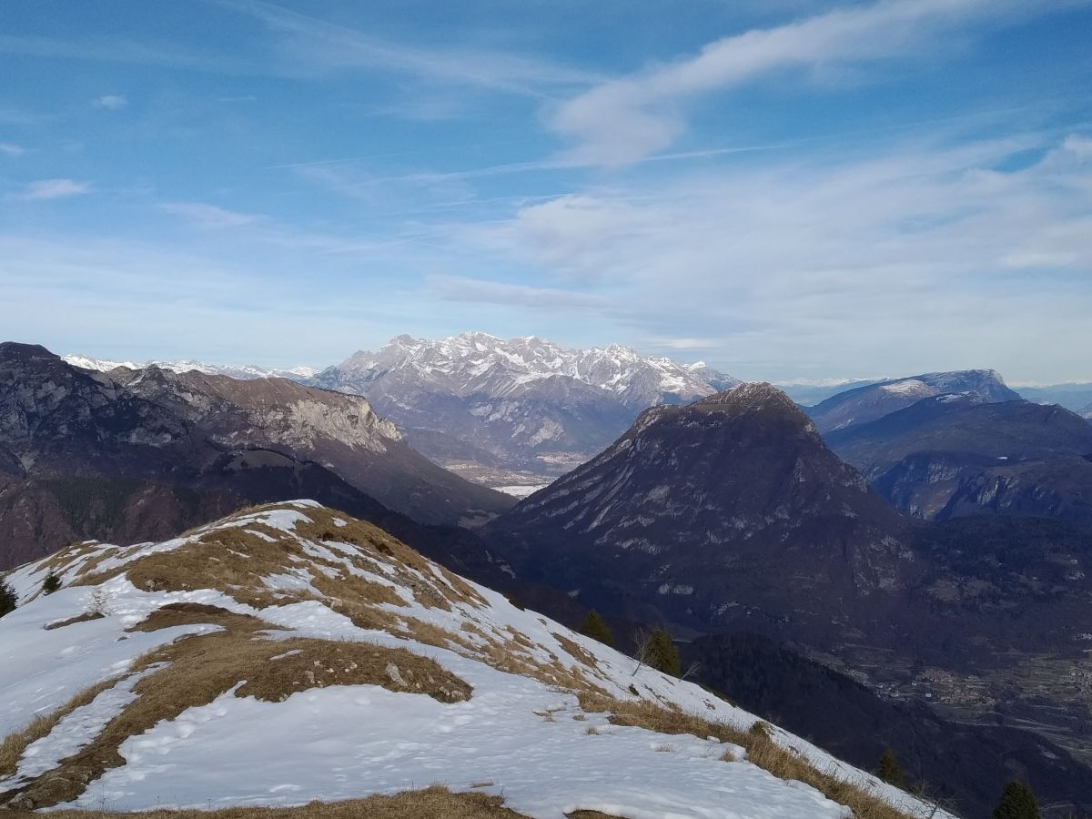 Nessuna croce di vetta, solo un ometto ed un bellissimo panorama che spazia dal lago di Garda con tutte le sue cime, al gruppo del Brenta fino all'imponente Caré Alto.