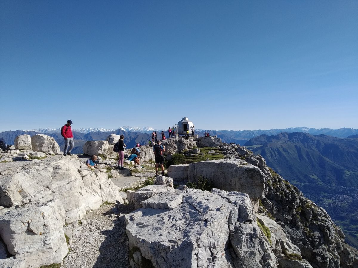 Visto l'orario decidiamo di goderci uno spuntino in cima senza la folla che solitamente è presente su questa bellissima montagna.