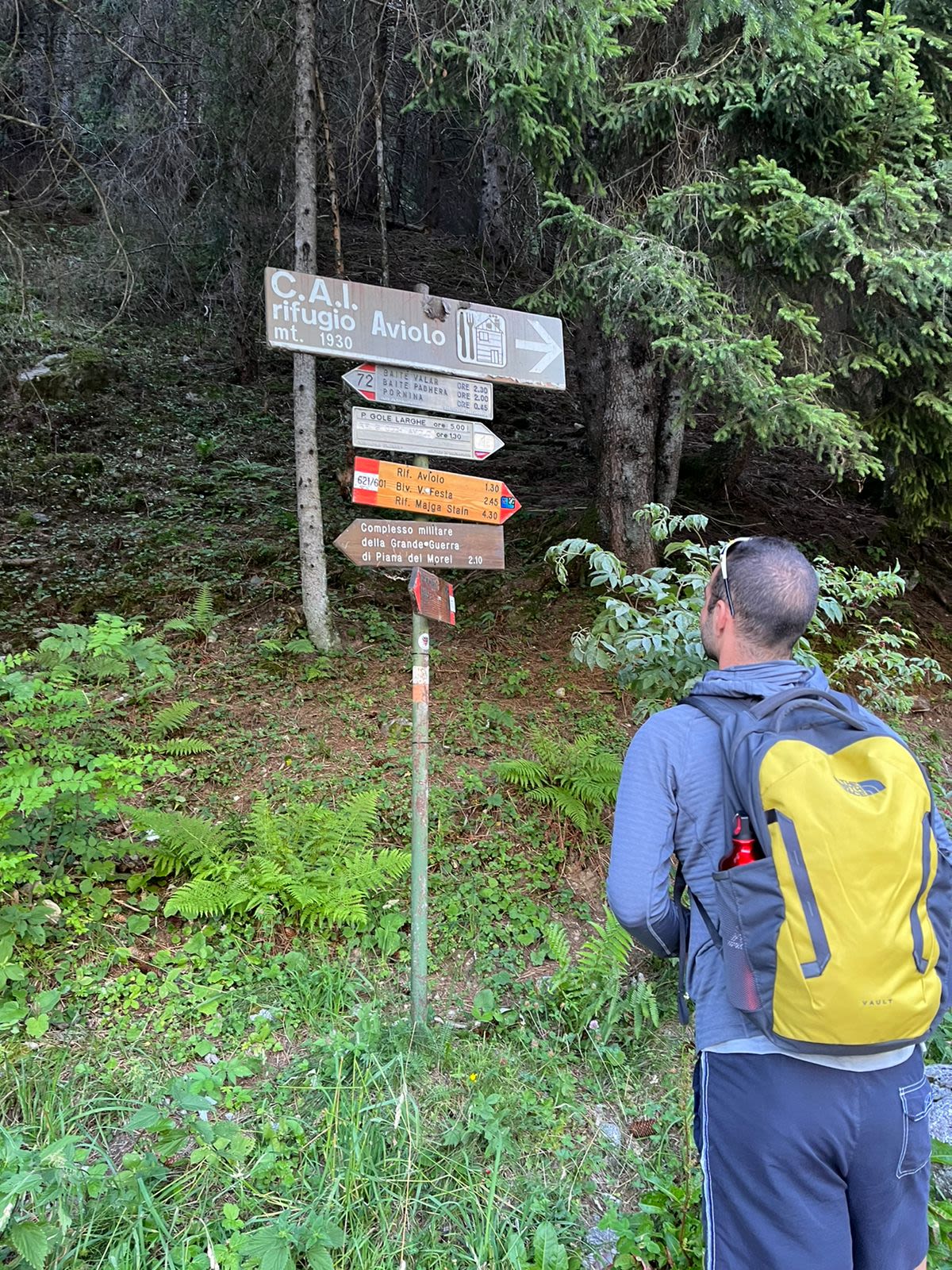 Dopo una buona colazione, imbocchiamo il sentiero 21, indicato dai cartelli appena fuori dal rifugio.