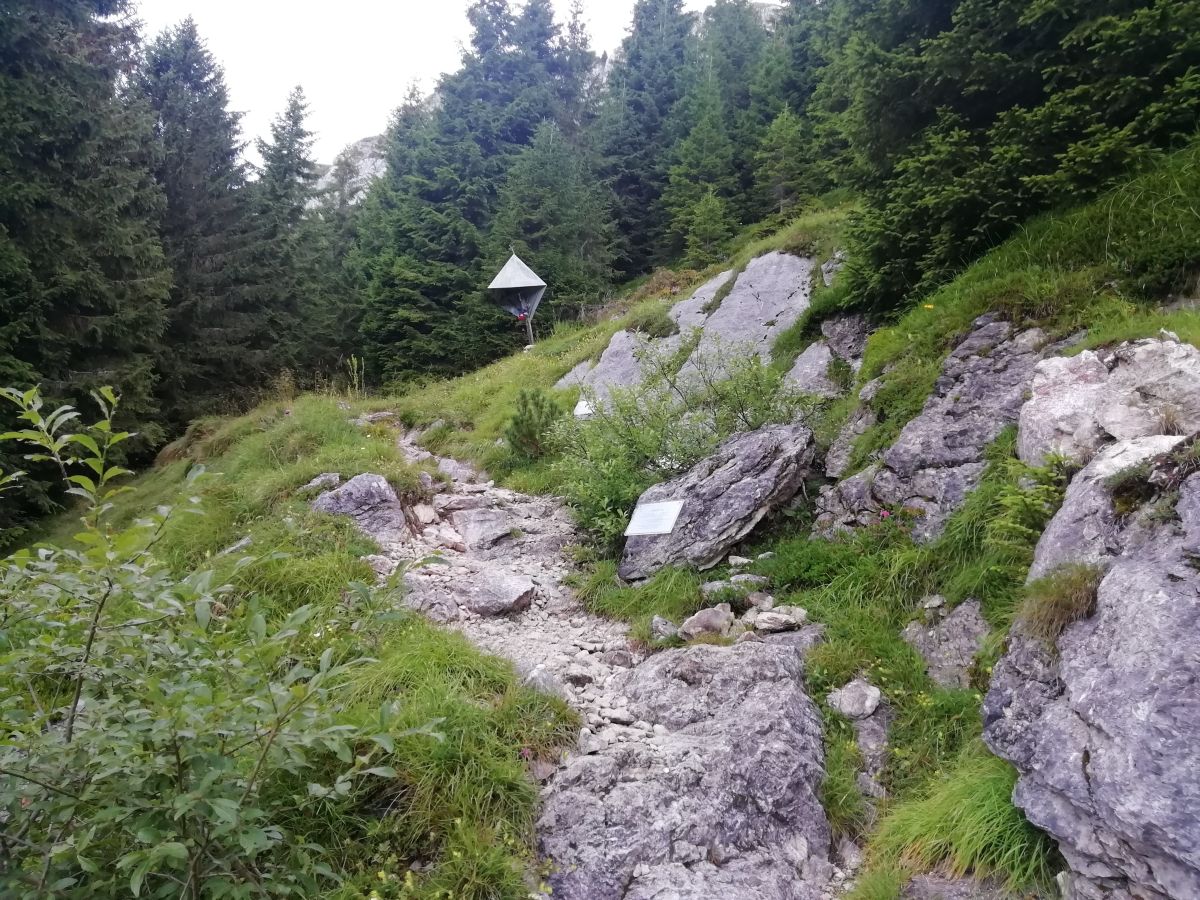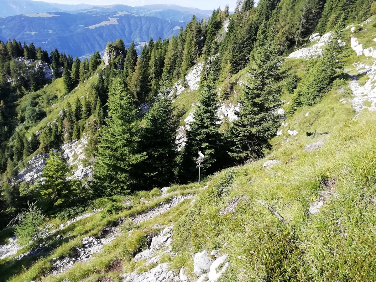 La salita avviene nel bosco seguendo il sentiero 821 fino a raggiungere il monumento al pilota austriaco Jòszef Kiss.