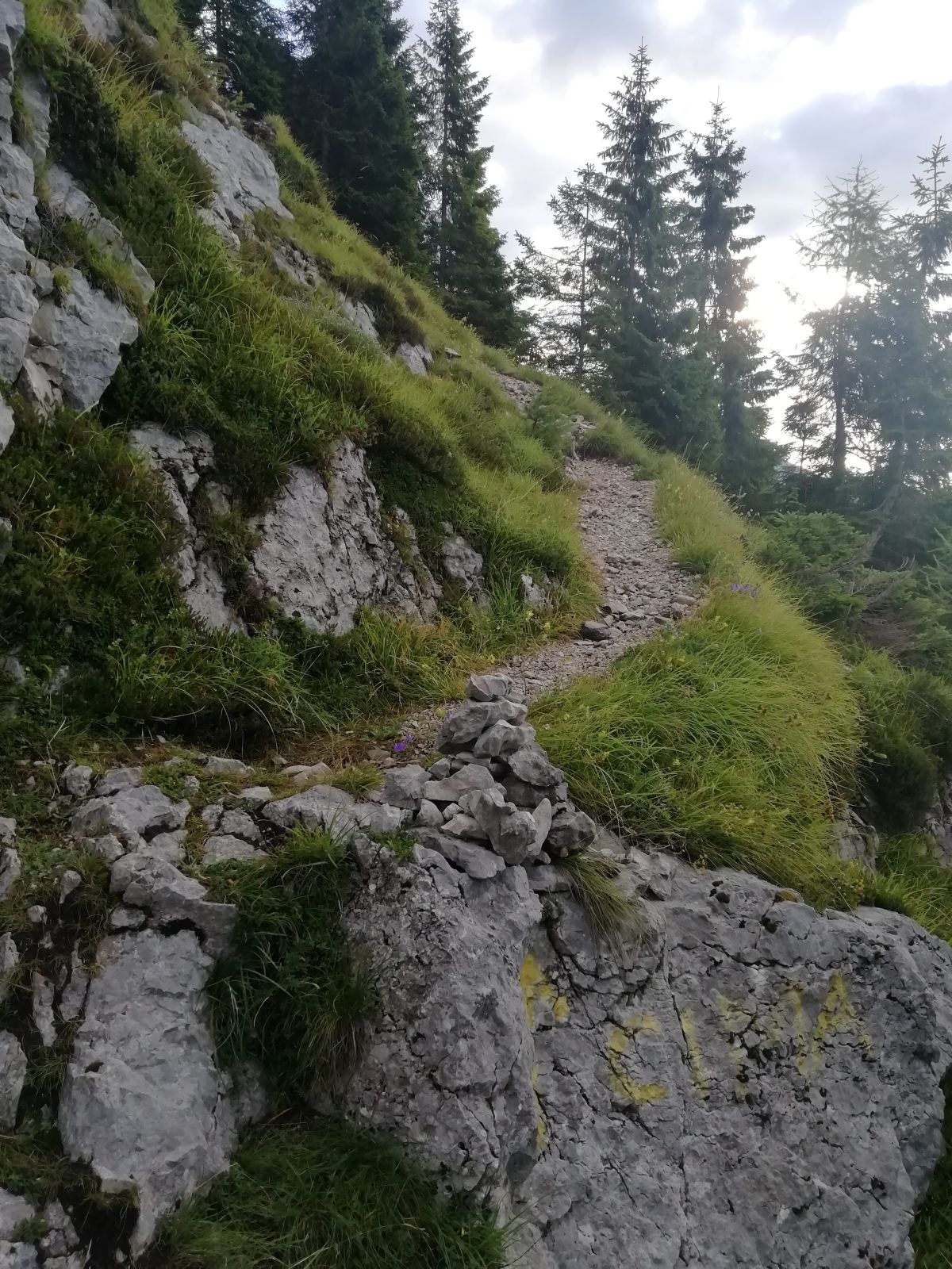 Poco più avanti si piega a sinistra e si abbandona il sentiero principale. Stando sotto la cresta per lungo tratto si raggiunge il largo castello roccioso.