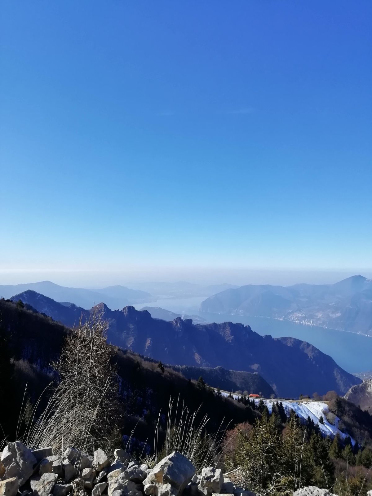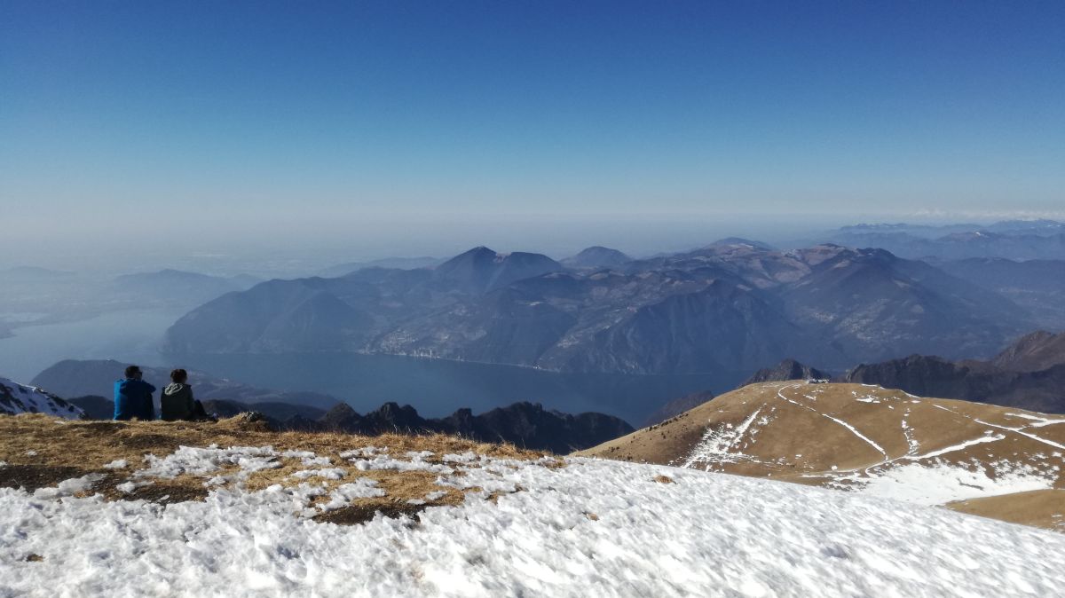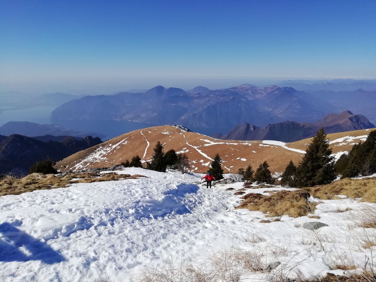 La giornata invernale soleggiata ci consente di ammirare tutto il panorama sottostante e le cime più lontane. La fatica per i quasi 1300mt di dislivello svanisce davanti a tanta bellezza. Dopo le foto di rito, scendiamo per stesso tragitto.