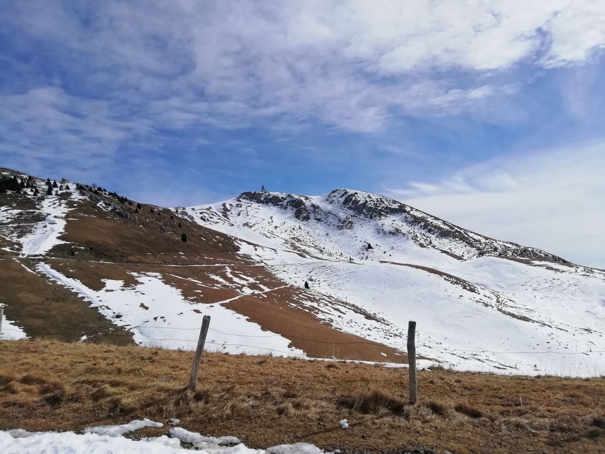 Dopo circa 2 ore dalla partenza siamo finalmente fuori dal bosco e possiamo godere del tepore del sole. Superato l'incrocio per il Corno del Bene dopo un'altra mezz'ora di cammino siamo alla Malga Palmarusso. Qui continuiamo sull'innevato 227 fin sotto al Rifugio Almici, che si raggiunge dopo un ripido tratto tra prato e roccette. Dal rifugio in 10 minuti si conquista la cima del Redentore.