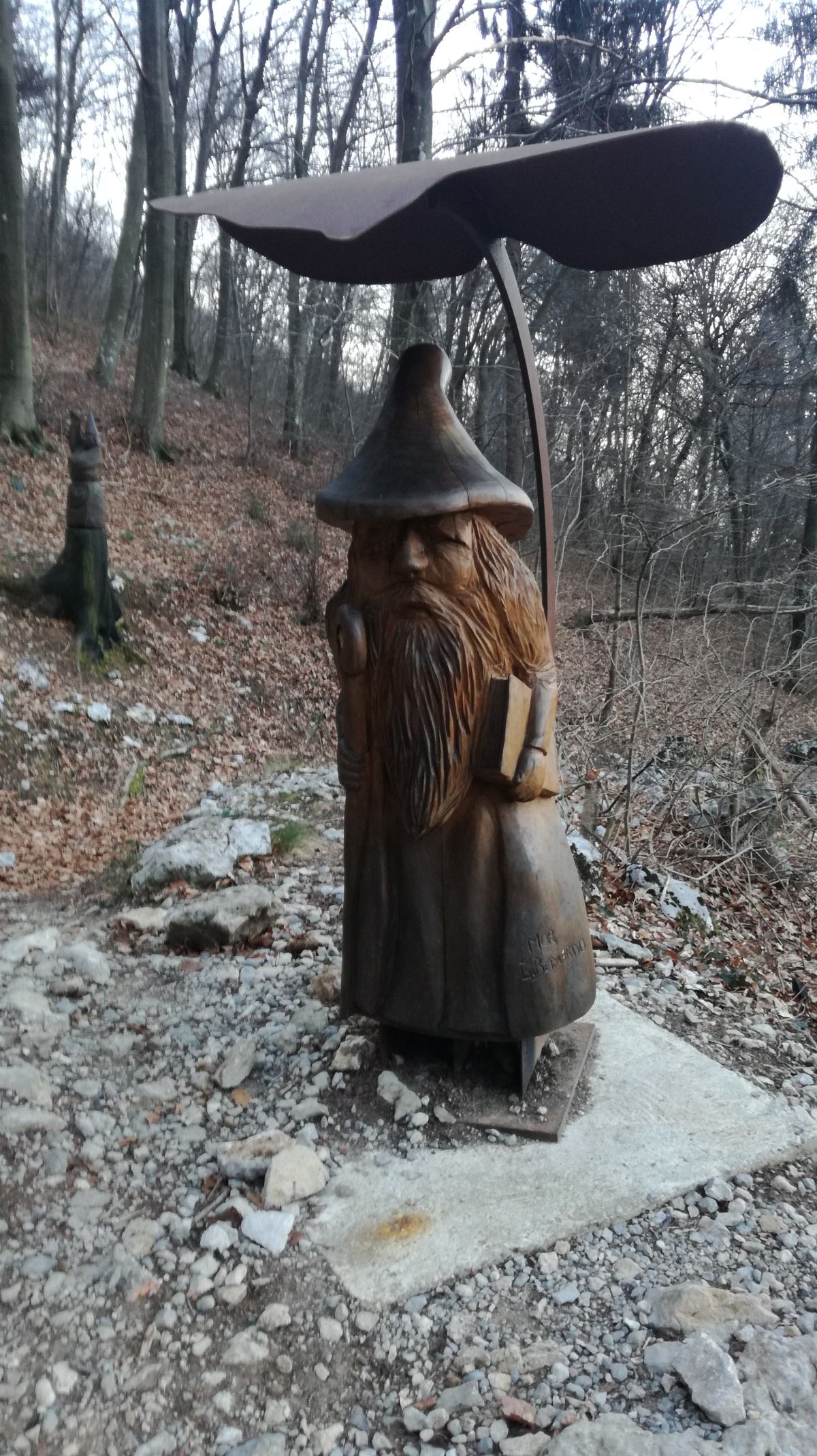 Seguiamo le indicazioni per il Bosco degli gnomi, che raggiungiamo subito per strada sterrata. Il segnavia da seguire è il 227. Poco più avanti incrociamo la variante 227A, che seguiremo anche più avanti: ci permette di tagliare qualche tornante.