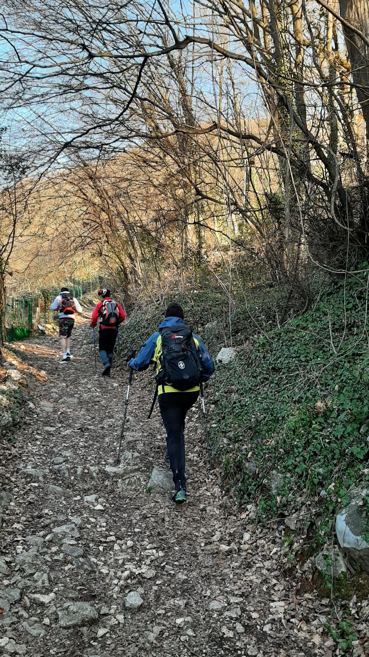 Partiamo subito in ripida salita su strada cementata fino al bivio presso una santella; teniamo la sinistra. Il sentiero entra nel bosco fino alla località Anveno (775mt, 1 ora dal parcheggio).