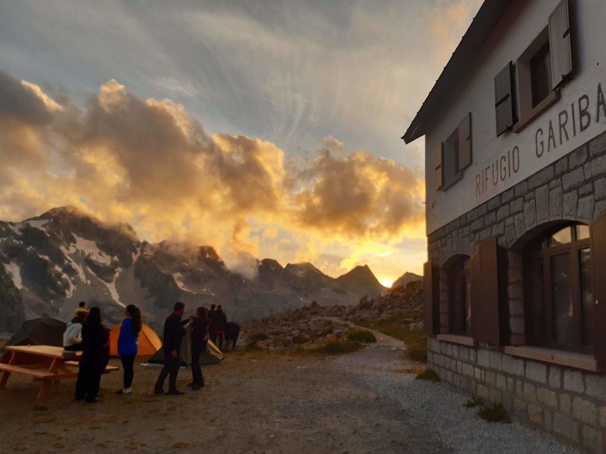 Dopo una piccola sosta, ripartiamo superando un ponticello e iniziando il tratto di sentiero lungo e ripido conosciuto come il Calvario. La vecchia strada militare prende quota in modo rapido, uscendo dal bosco. Finalmente scorgiamo la bella chiesetta degli alpini vicino alla diga del lago Venerocolo e quindi arriviamo al rifugio (poco più di 3.00h dal parcheggio), dove pernottiamo.