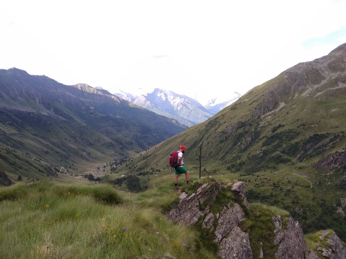 La giornata è nuvolosa e fresca ma la posizione privilegiata ci permette di godere dello splendido panorama sulle valli e sulle cime: tra tutte spiccano il gruppo dell'Adamello e la Presanella.