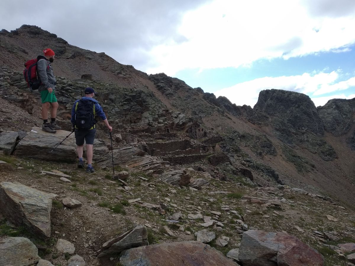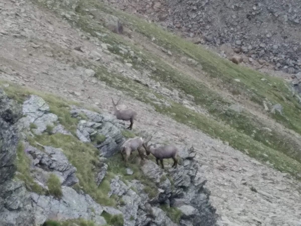 Il percorso si fa ora più impegnativo. Passando tra i ruderi delle costruzioni della prima guerra mondiali avvistiamo molti stambecchi, due dei quali impegnati in uno scontro a suon di cornate.