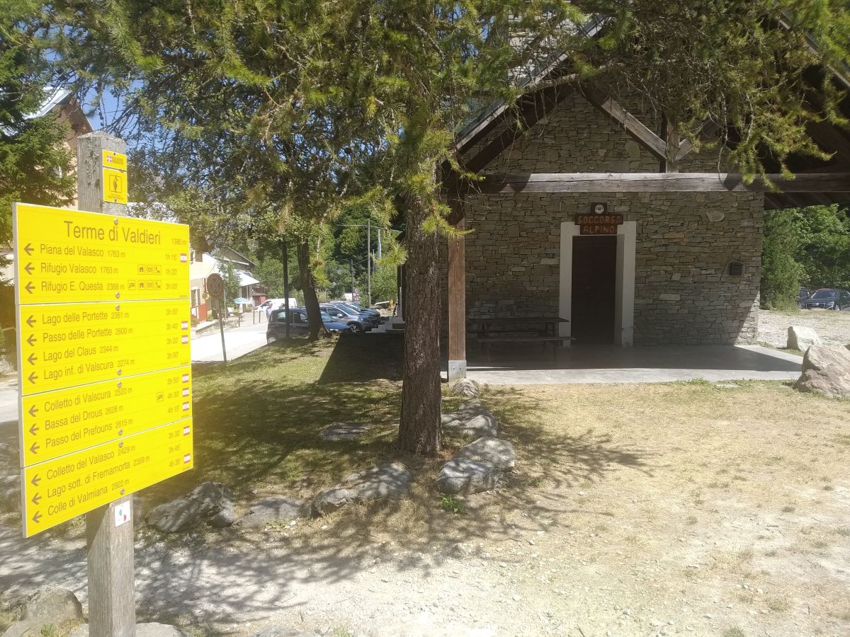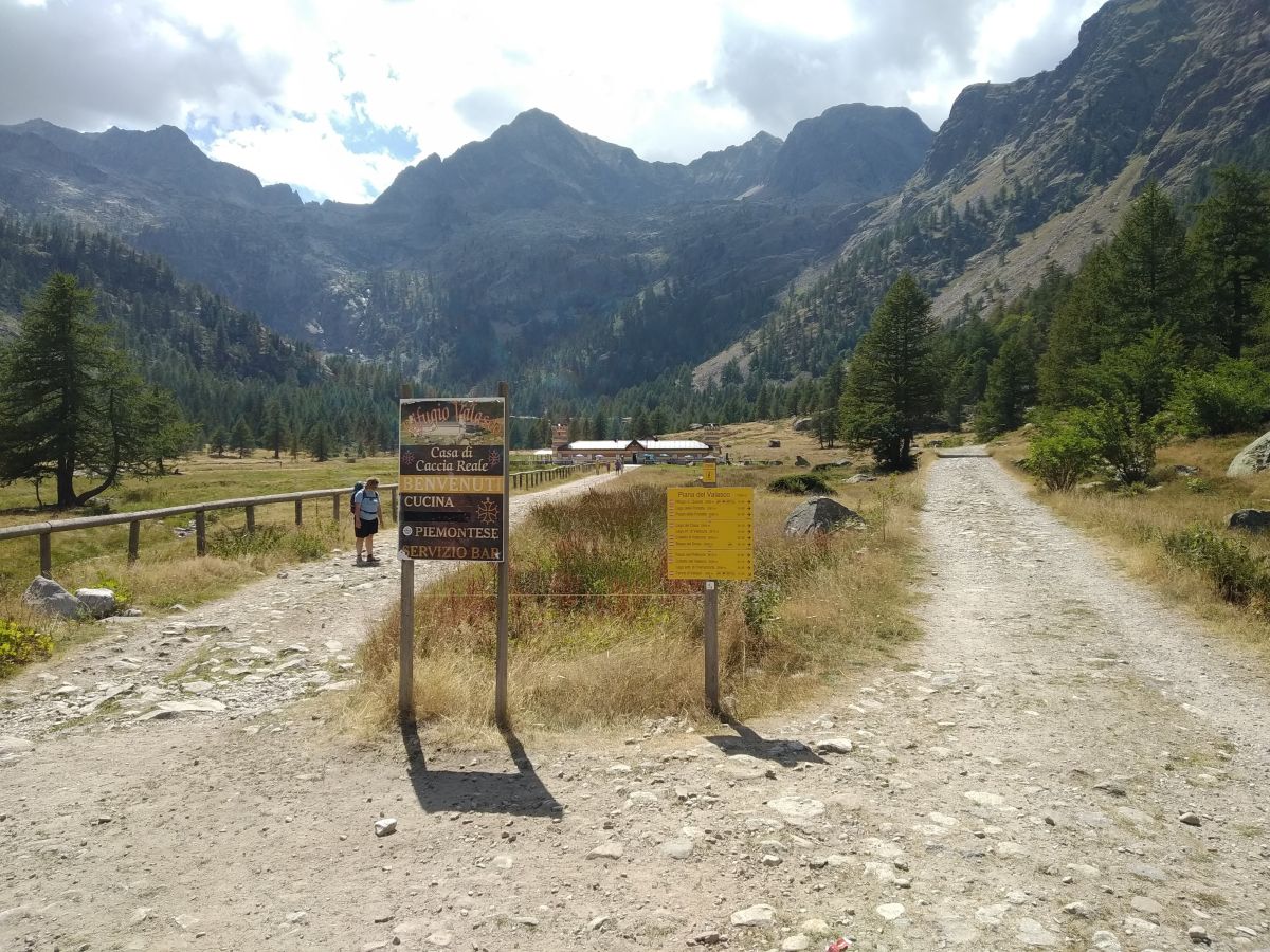 Ci incamminiamo sulla carrareccia che risale la valle in direzione ovest a fianco di un torrente. La traccia alterna tratti di carrozzabile ad altri su sentiero ed in poco più di un'ora ci conduce fino al Piano del Valasco, una bellissima piana verde dove scorre l'omonimo torrente e dove si trova il Rifugio Valasco, una volta reale casa di caccia dei Savoia.