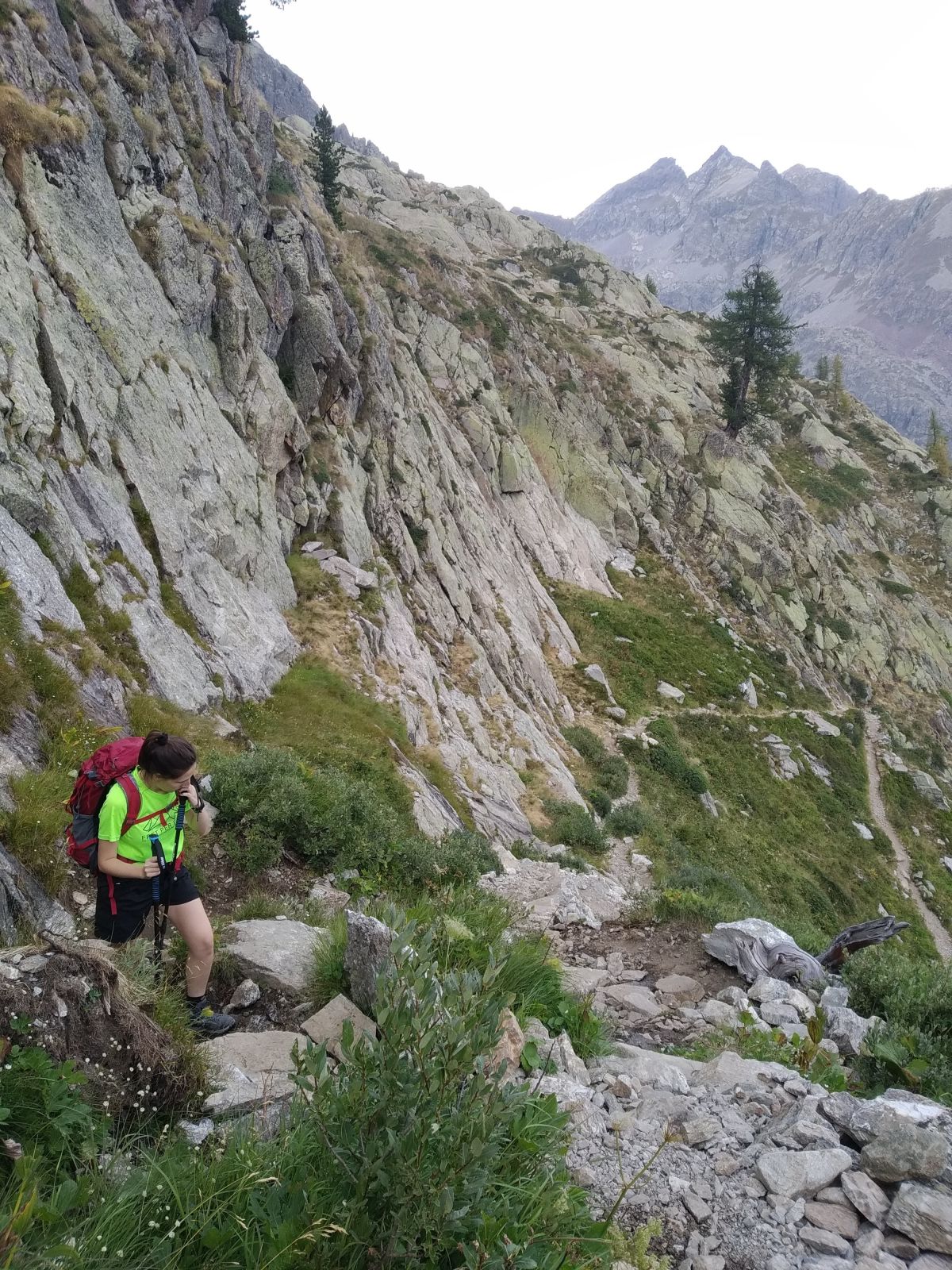 Terminata la pausa riprendiamo la discesa lungo la mulattiera che in un'oretta e mezza, passando dal larice secolare incontrato in salita il giorno precedente, ci conduce fino al Rifugio Valasco, dove ci attende un buon pranzo.