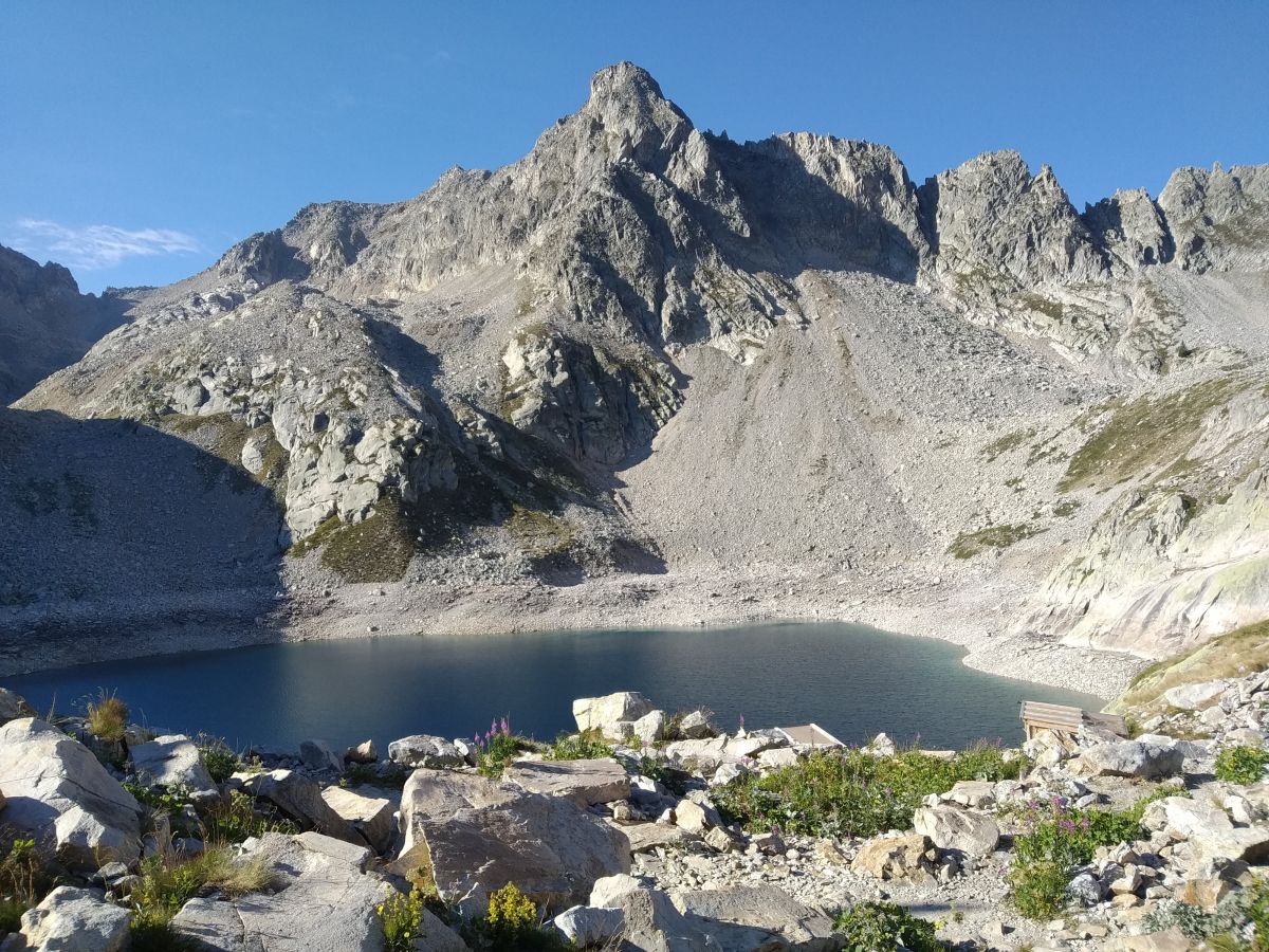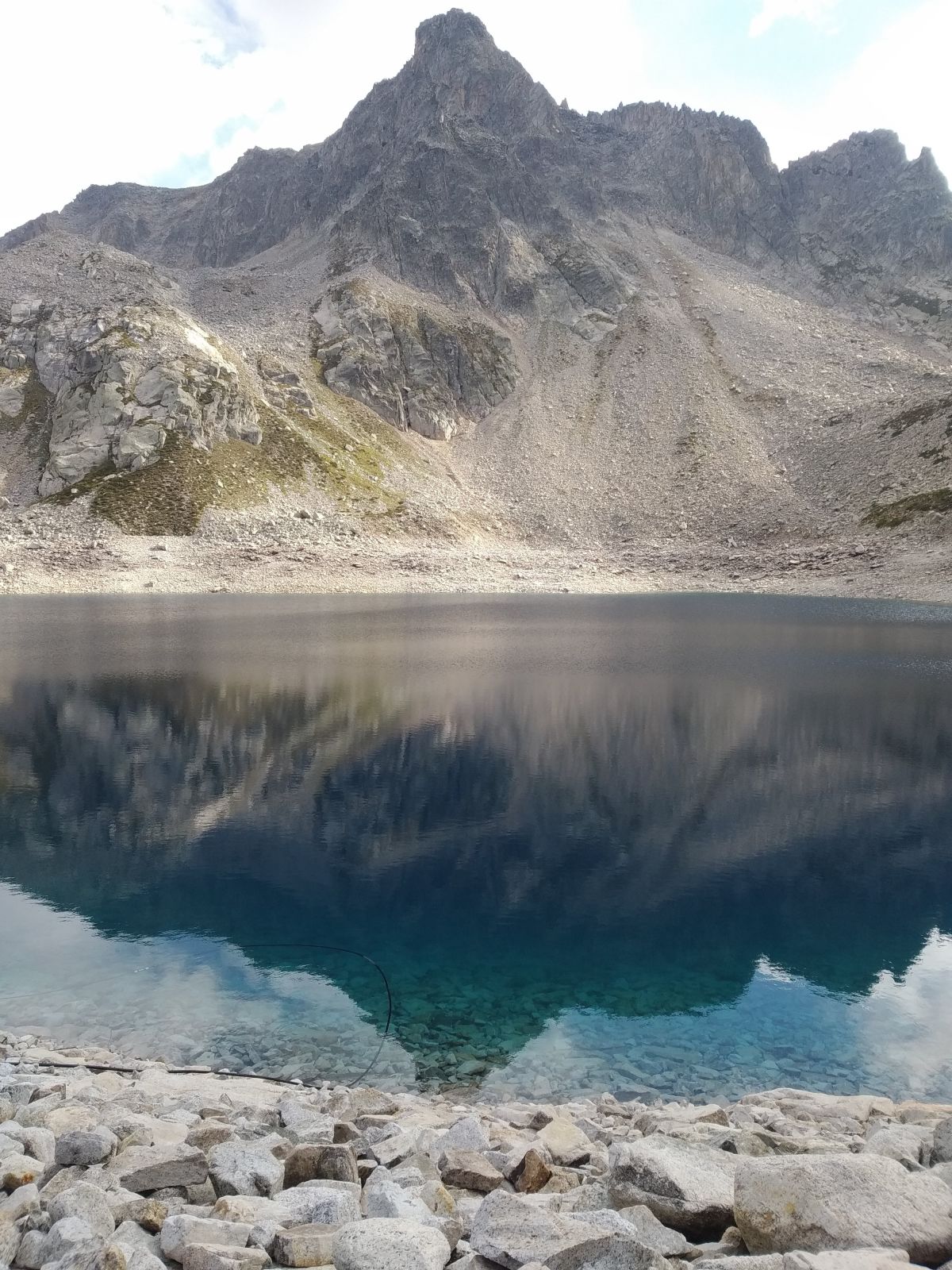 Alle spalle del rifugio il bel lago naturale delle Portette, limpidissimo, dove possiamo ammirare il riflesso delle cime che ci separano dalla Francia.