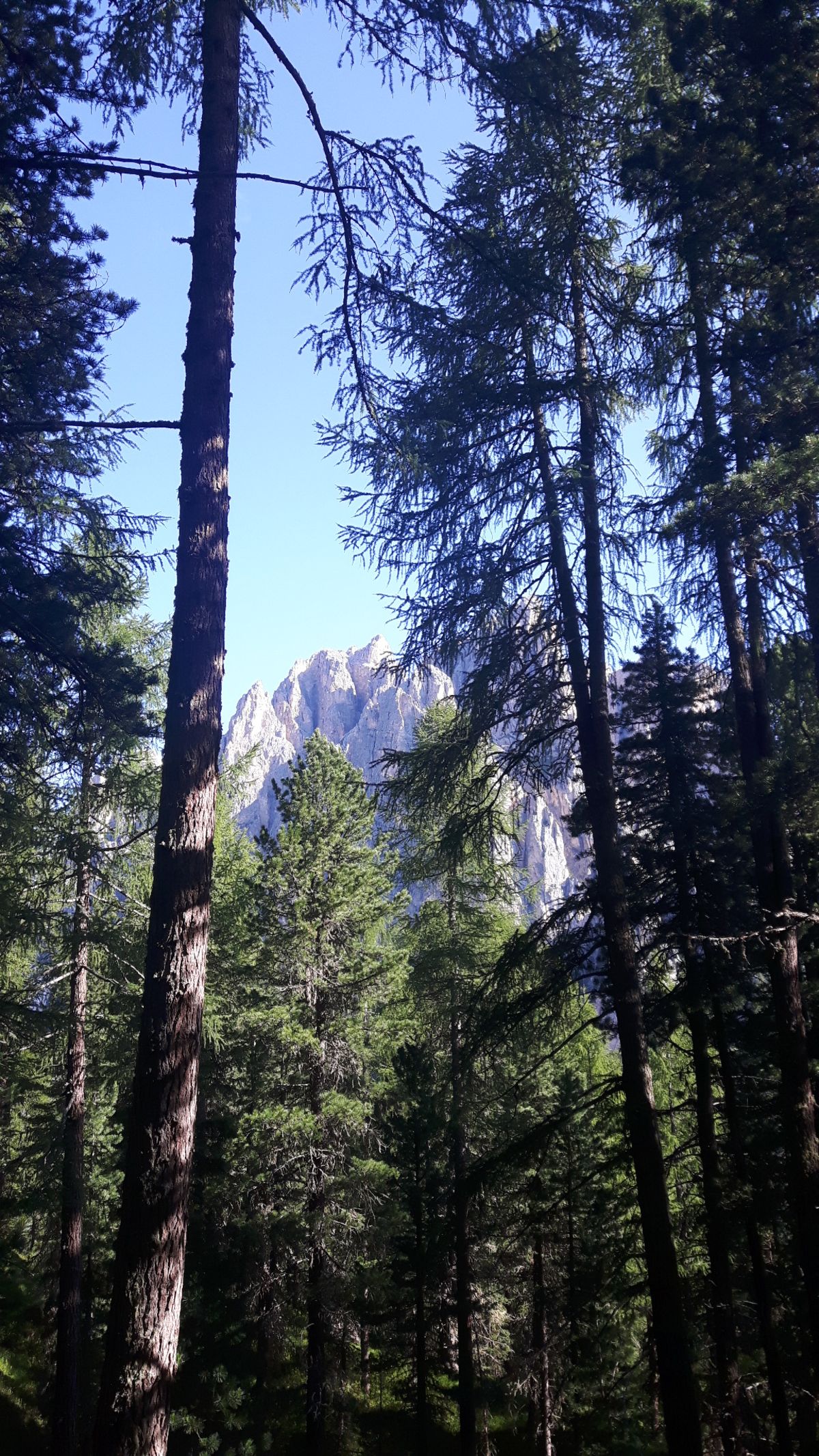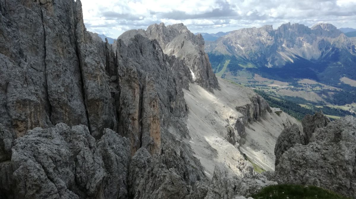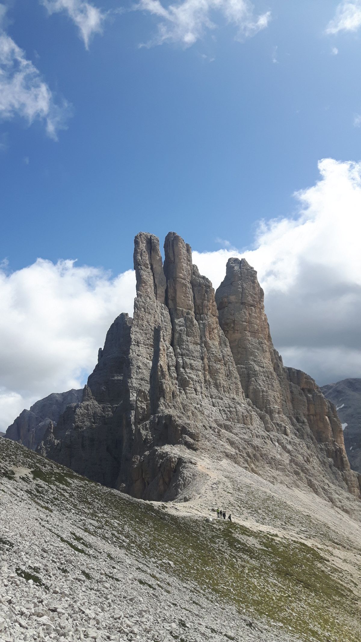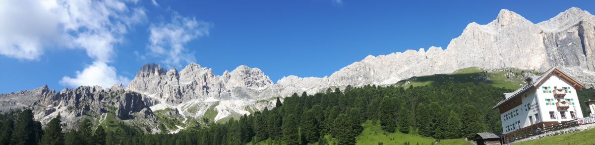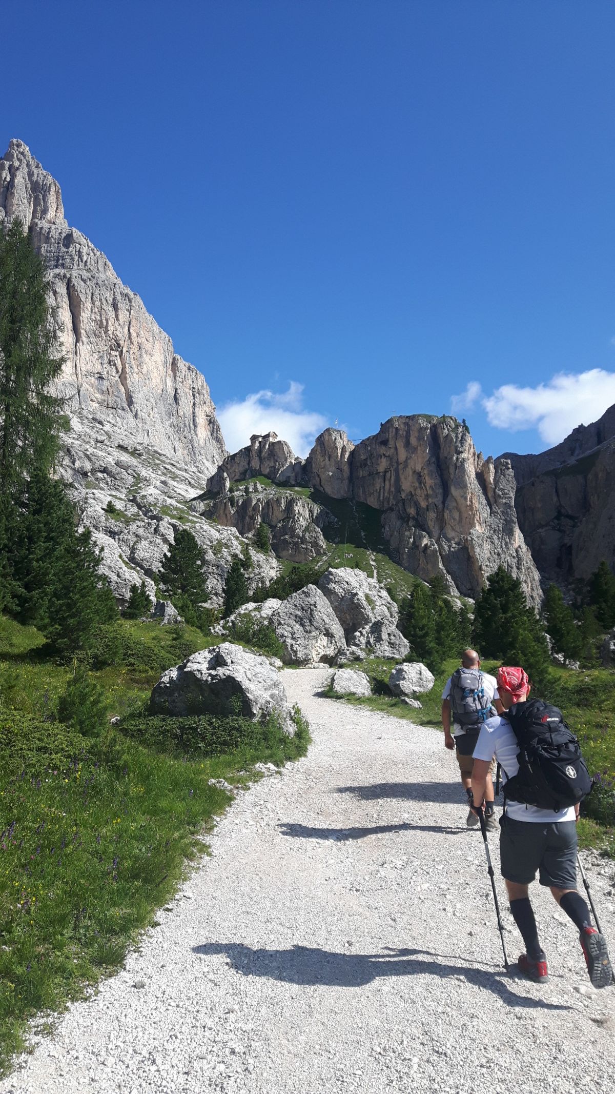 Superato questo ripido tratto, entriamo nella Conca del Gartl, dove si trova il Rifugio Re Alberto I (1.00 ora dal Rifugio Vajolet). Di fronte a noi si stagliano le magnifiche Torri del Vajolet, e noi rimaniamo estasiati nel vedere le numerose cordate di scalatori in azione sulle sue pareti strapiombanti.